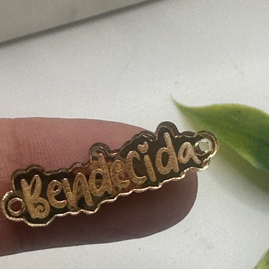 Frase “Bendecida” conector en acrílico dorado