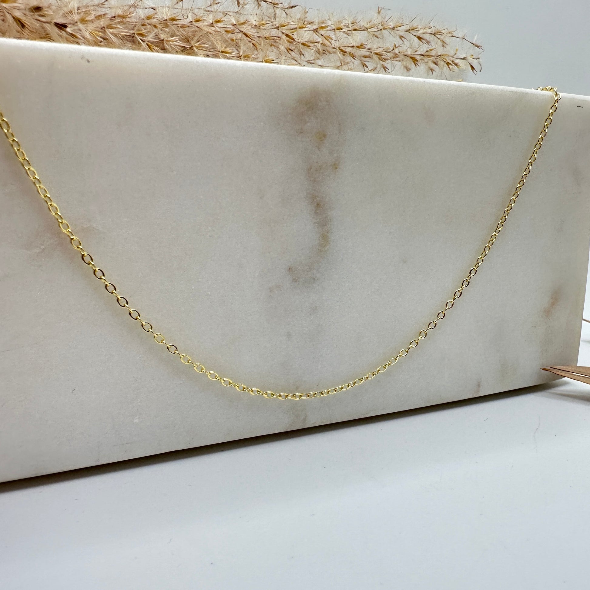 Descripción Cadena lista para usar enchapada en Oro 18k de 16” con extensor de 1”