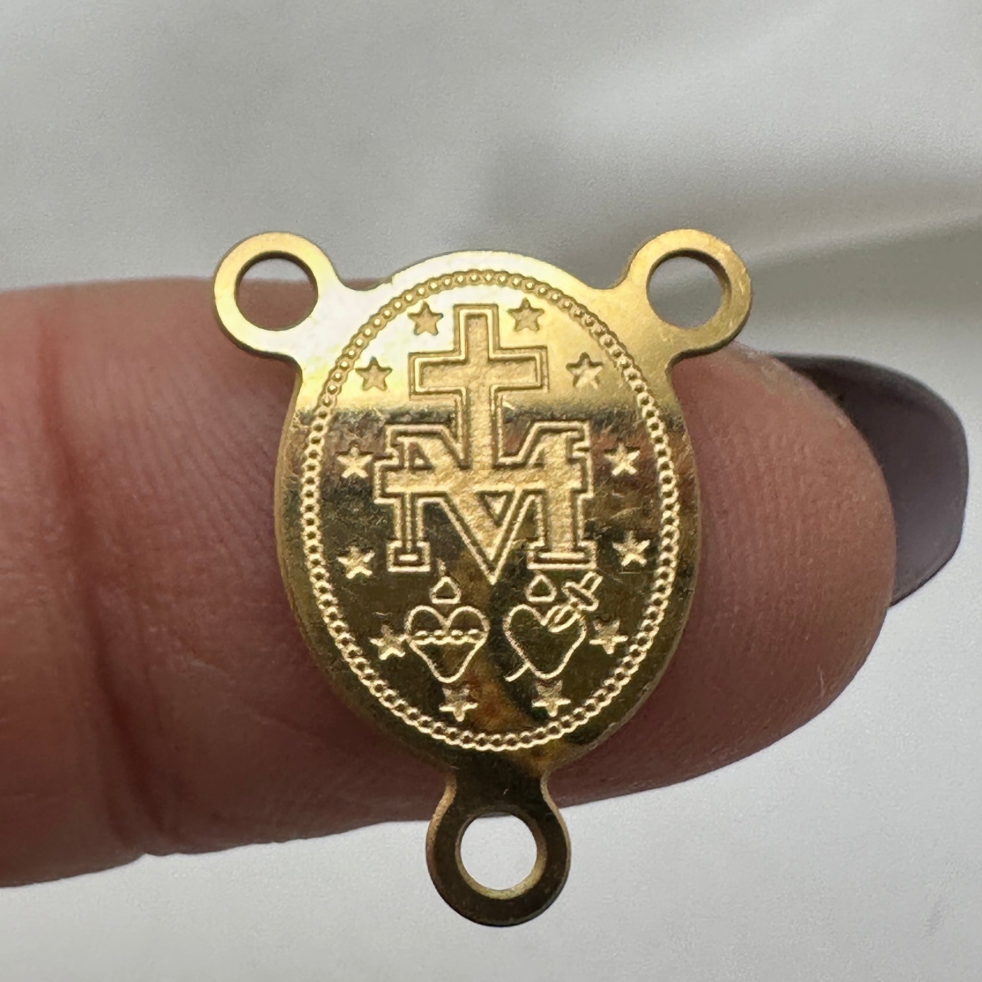 Descripción Centro de Rosarios Virgen Milagrosa en Stainless steel Medida 15mm de largo