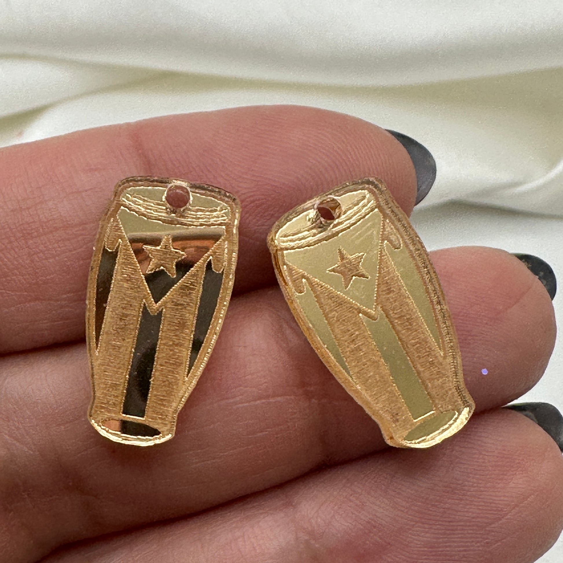 Descripción Congas en Acrílico Dorado con Bandera de Puerto Rico Grabada
