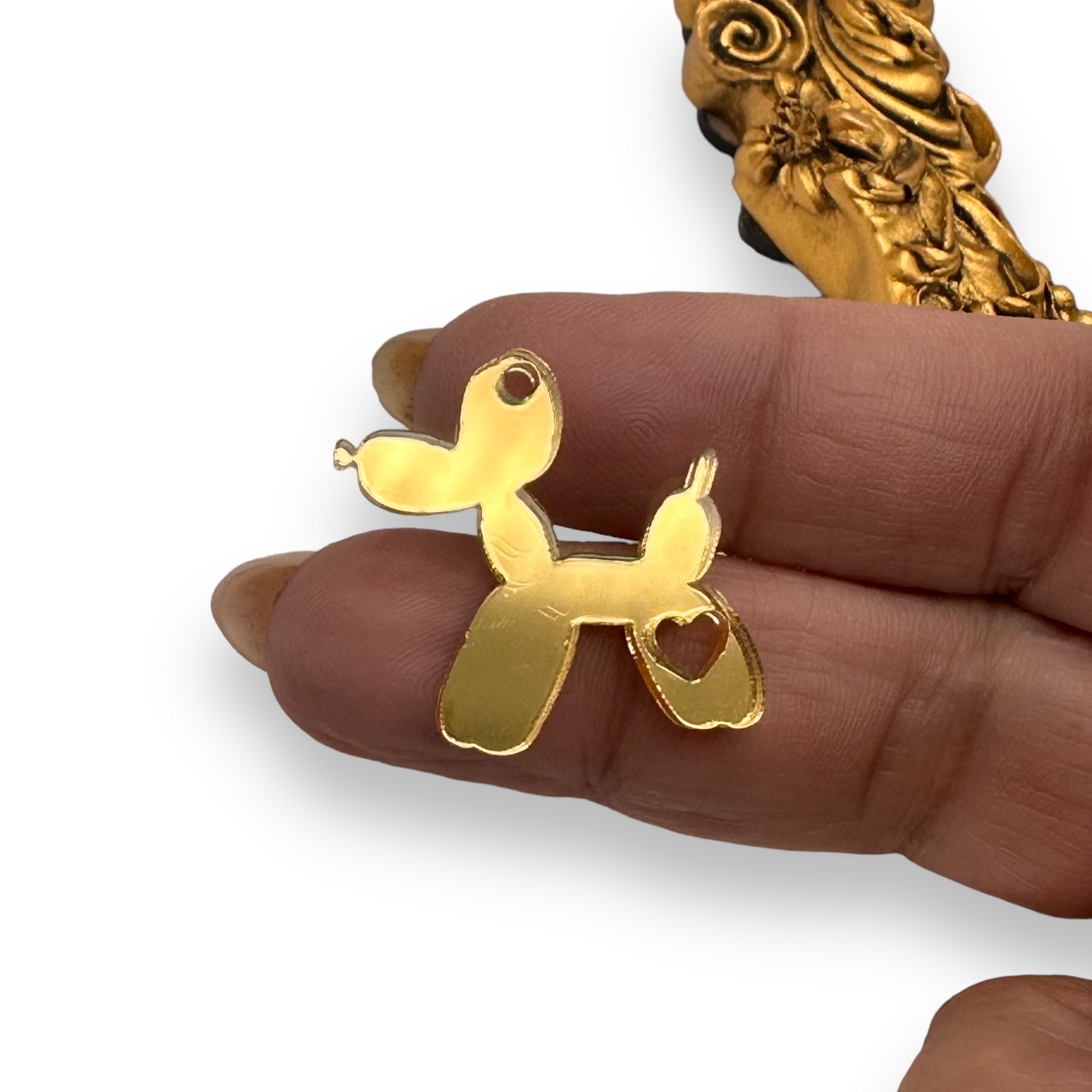 Descripcion Charm de Perro Globo en Acrilico Espejo Dorado
