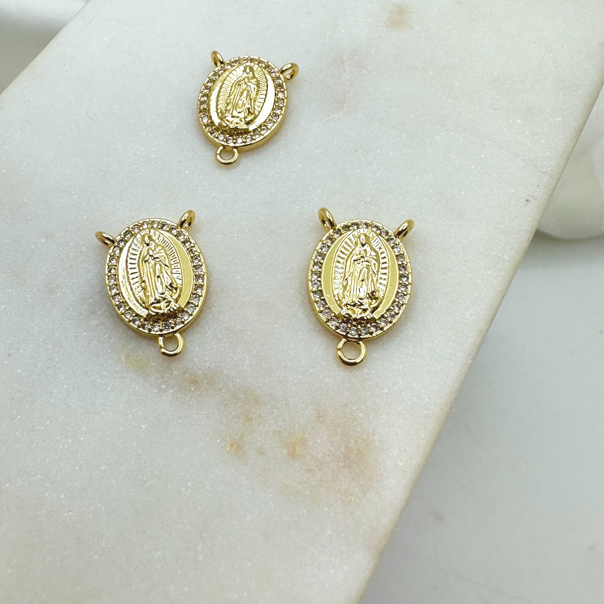 Descripción Centro de Rosario de Virgen de Guadalupe con Zirconias Gold plated 18k